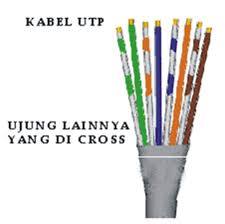 Cara memasang kabel UTP tipe straight sudah saya jelaskan tadi. Sekarang saya bahas mengenai cara memasang kabel UTP tipe cross. Cara pemasangan kabel UTP tipe cross hampir sama dengan memasang kabel UTP tipe straight. Mengenai teknis pemasanganya sama seperti tadi. Perbedaanya adalah urutan warna kabel pada ujung kabel yang kedua. Untuk ujung kabel pertama, susunan kabel sama dengan susunan kabel UTP tipe straight yaitu: